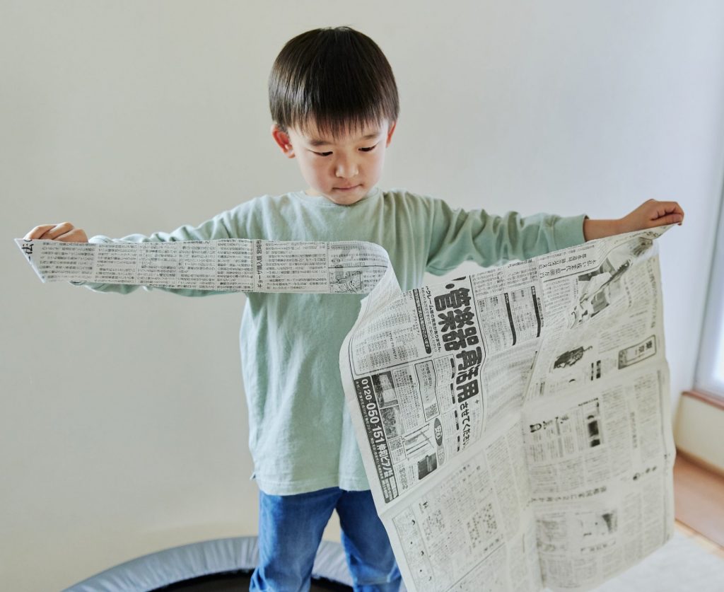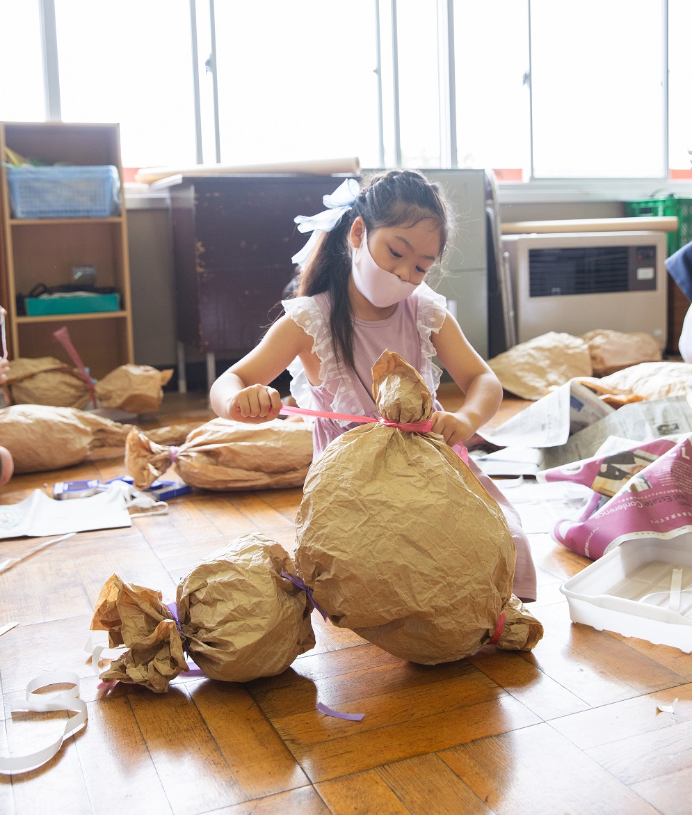 普段ふれることのない大きな紙や、様々な触り心地の紙に、「かぶる」「包まれる」「しく」「やぶる」「丸める」など多様な働きかけをすることで、自分の「やってみたい」を生み出し、その繰り返しの中で、紙の魅力を全身で味わいます。